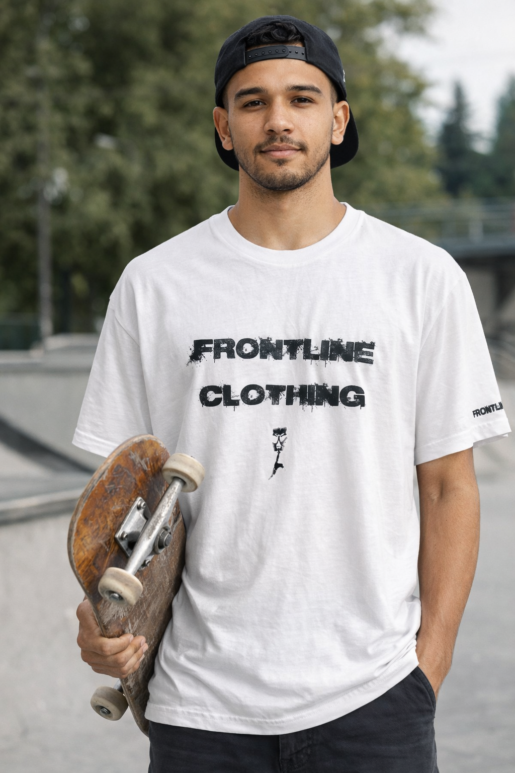 Keep it simple and powerful with the official Frontline Clothing logo tee. A timeless staple that pairs with anything in your wardrobe.